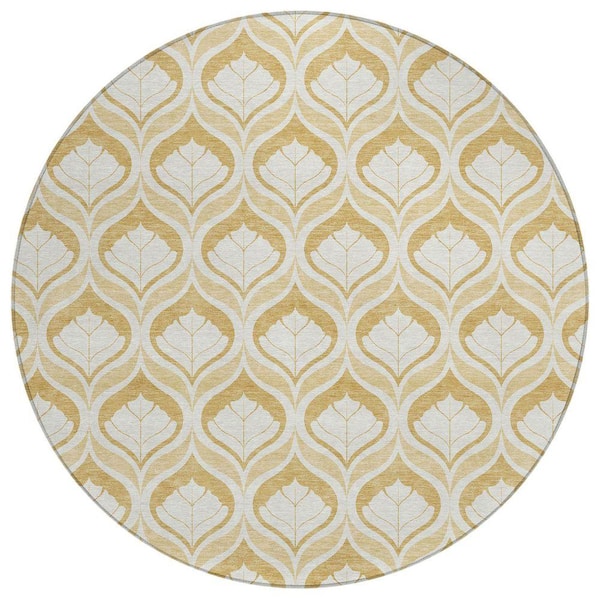 Chantille Machine Washable Indoor/Outdoor Abstract ACN2379 Gold 8 ft. x 8 ft. Round Rug