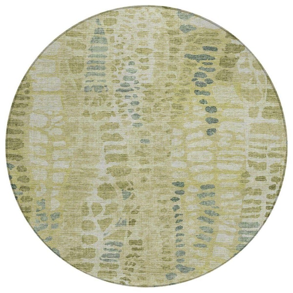 Chantille Machine Washable Indoor/Outdoor Abstract ACN2382 Aloe 8 ft. x 8 ft. Round Rug