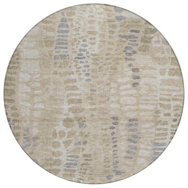 Chantille Machine Washable Indoor/Outdoor Abstract ACN2382 Beige 8 ft. x 8 ft. Round Rug