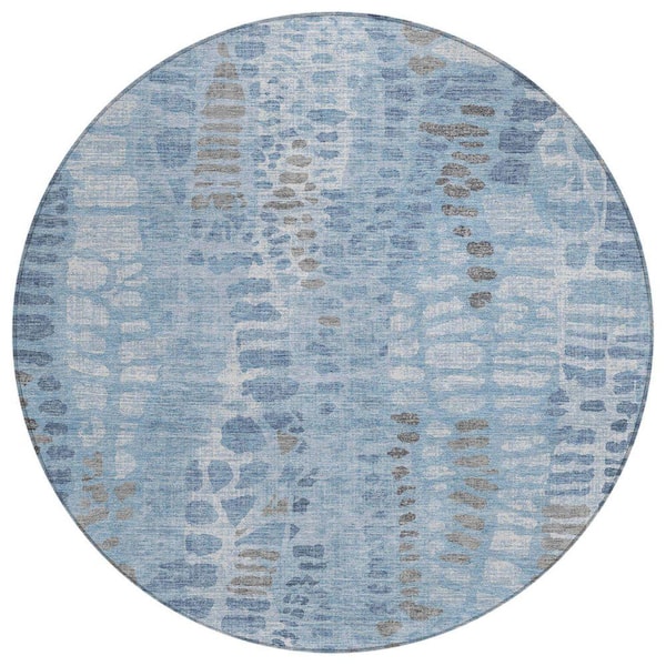 Chantille Machine Washable Indoor/Outdoor Abstract ACN2382 Denim 8 ft. x 8 ft. Round Rug