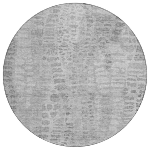 Chantille Machine Washable Indoor/Outdoor Abstract ACN2382 Gray 8 ft. x 8 ft. Round Rug