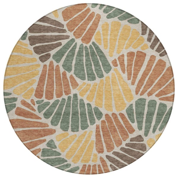 Chantille Machine Washable Indoor/Outdoor Abstract ACN2384 Basil 8 ft. x 8 ft. Round Rug