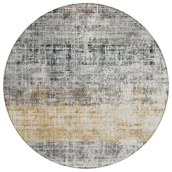 Chantille Machine Washable Indoor/Outdoor Abstract ACN2388 Gray 8 ft. x 8 ft. Round Rug