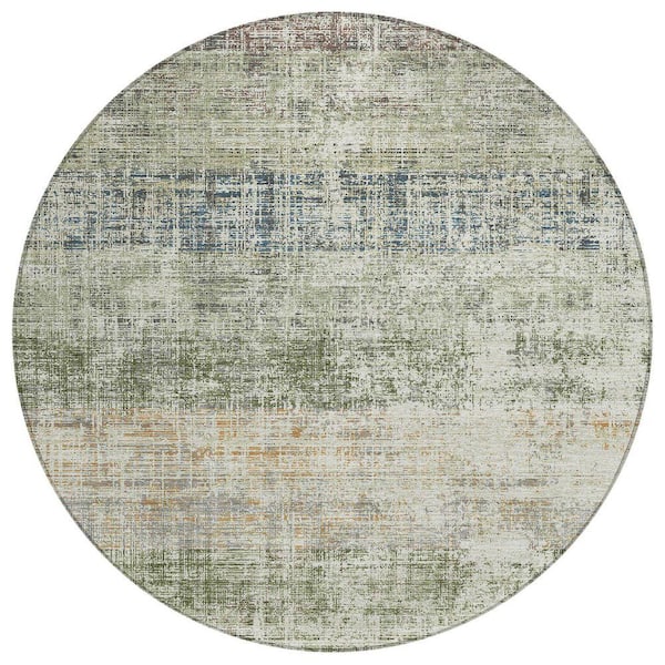 Chantille Machine Washable Indoor/Outdoor Abstract ACN2388 Olive 8 ft. x 8 ft. Round Rug
