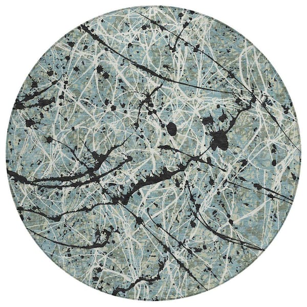 Chantille Machine Washable Indoor/Outdoor Abstract ACN2389 Aloe 8 ft. x 8 ft. Round Rug