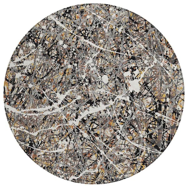 Chantille Machine Washable Indoor/Outdoor Abstract ACN2389 Black 8 ft. x 8 ft. Round Rug