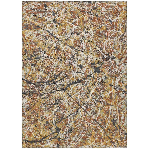 Chantille Machine Washable Indoor/Outdoor Abstract ACN2389 Gold 8 ft. x 10 ft. Area Rug