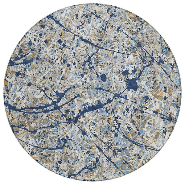 Chantille Machine Washable Indoor/Outdoor Abstract ACN2389 Navy 8 ft. x 8 ft. Round Rug