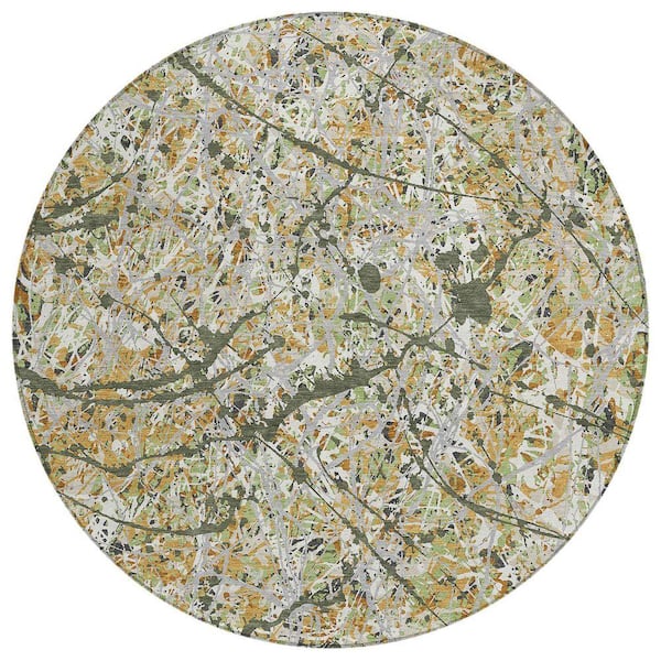 Chantille Machine Washable Indoor/Outdoor Abstract ACN2389 Olive 8 ft. x 8 ft. Round Rug