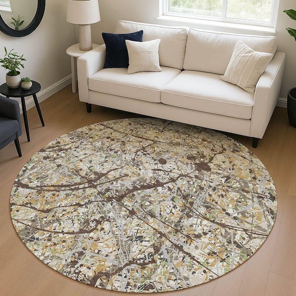 Chantille Machine Washable Indoor/Outdoor Abstract ACN2389 Taupe 8 ft. x 8 ft. Round Rug
