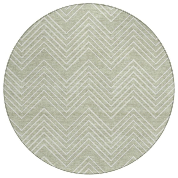 Chantille Machine Washable Indoor/Outdoor Abstract ACN2390 Celery 8 ft. x 8 ft. Round Rug