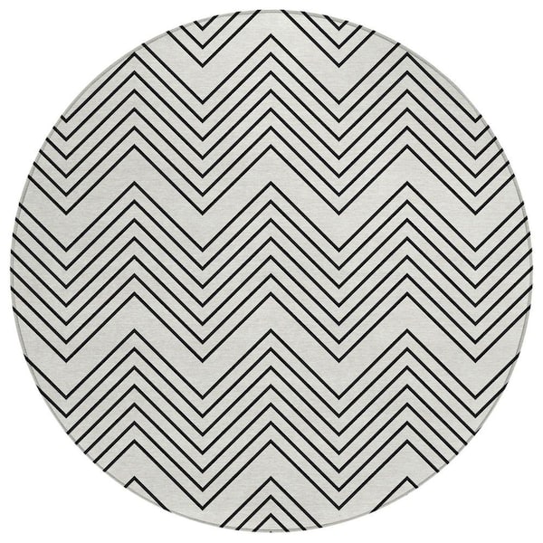 Chantille Machine Washable Indoor/Outdoor Abstract ACN2390 Ivory 8 ft. x 8 ft. Round Rug