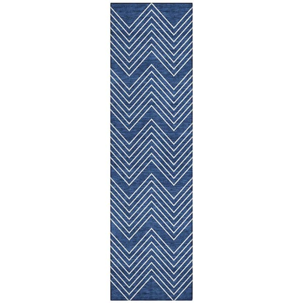Chantille Machine Washable Indoor/Outdoor Abstract ACN2390 Navy 2 ft. x 7 ft. Runner Rug