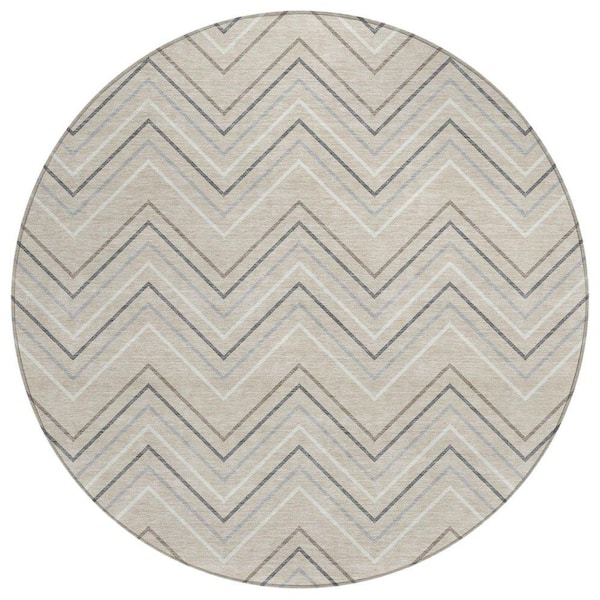 Chantille Machine Washable Indoor/Outdoor Abstract ACN2391 Beige 8 ft. x 8 ft. Round Rug