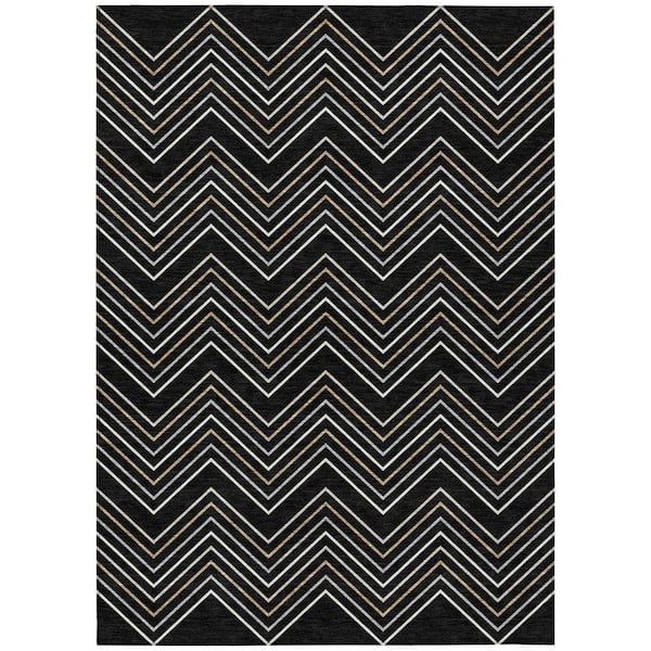 Chantille Machine Washable Indoor/Outdoor Abstract ACN2391 Black 3 ft. x 5 ft. Area Rug