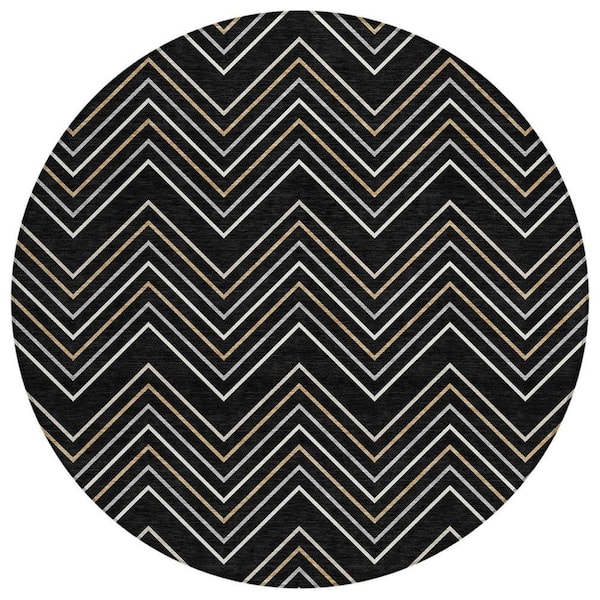 Chantille Machine Washable Indoor/Outdoor Abstract ACN2391 Black 8 ft. x 8 ft. Round Rug