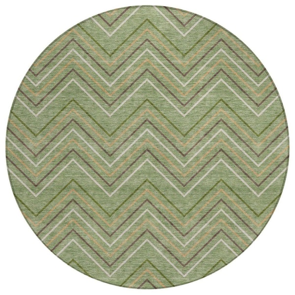 Chantille Machine Washable Indoor/Outdoor Abstract ACN2391 Green 8 ft. x 8 ft. Round Rug