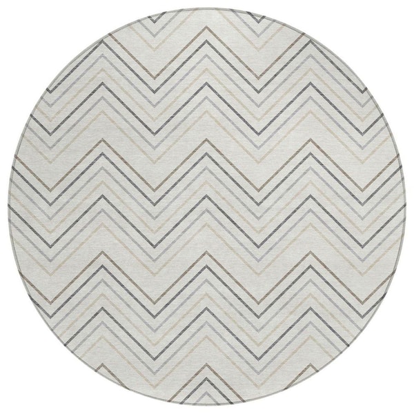 Chantille Machine Washable Indoor/Outdoor Abstract ACN2391 Ivory 8 ft. x 8 ft. Round Rug