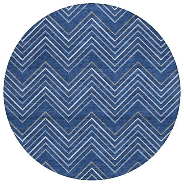 Chantille Machine Washable Indoor/Outdoor Abstract ACN2391 Navy 8 ft. x 8 ft. Round Rug