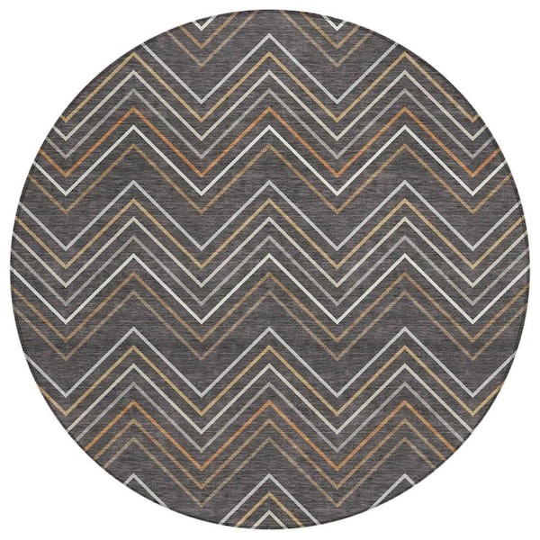 Chantille Machine Washable Indoor/Outdoor Abstract ACN2392 Charcoal 8 ft. x 8 ft. Round Rug