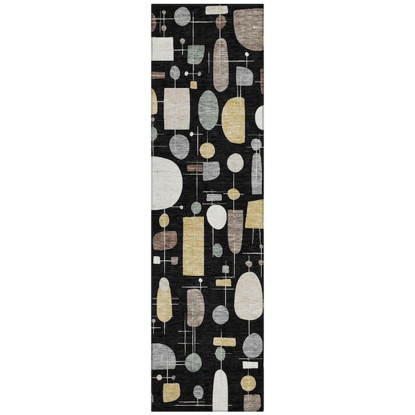 Chantille Machine Washable Indoor/Outdoor Abstract ACN2393 Black 2 ft. x 7 ft. Runner Rug