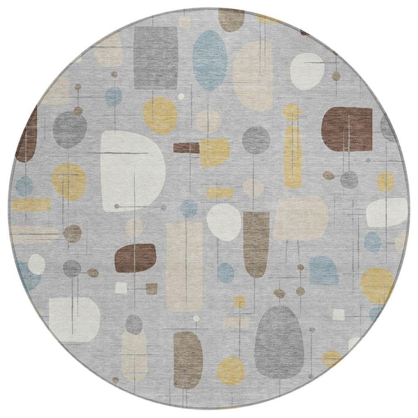 Chantille Machine Washable Indoor/Outdoor Abstract ACN2393 Silver 8 ft. x 8 ft. Round Rug