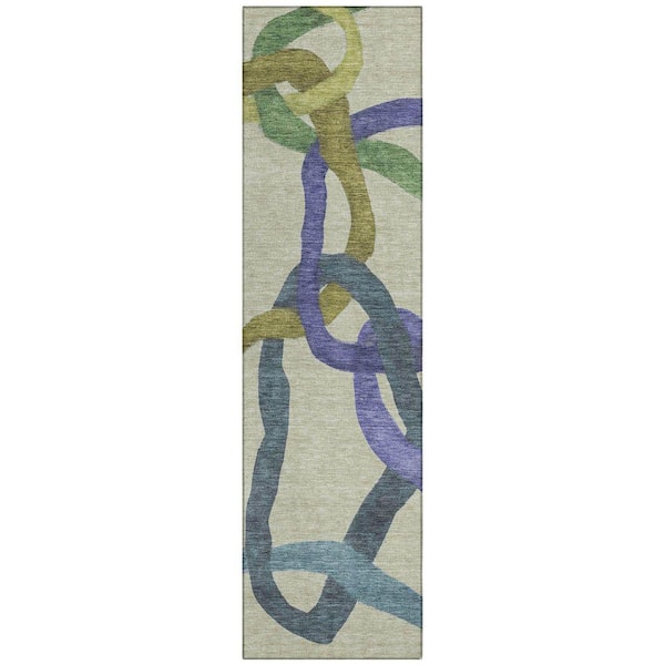 Chantille Machine Washable Indoor/Outdoor Abstract ACN2394 Aloe 2 ft. x 7 ft. Runner Rug