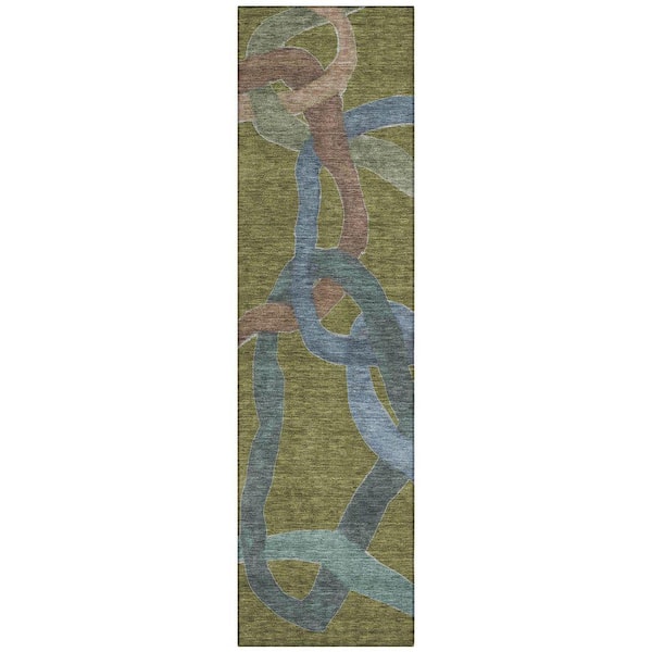 Chantille Machine Washable Indoor/Outdoor Abstract ACN2394 Olive 2 ft. x 7 ft. Runner Rug