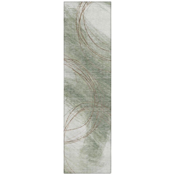 Chantille Machine Washable Indoor/Outdoor Abstract ACN2396 Sage 2 ft. x 7 ft. Runner Rug