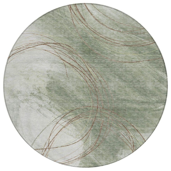 Chantille Machine Washable Indoor/Outdoor Abstract ACN2396 Sage 8 ft. x 8 ft. Round Rug