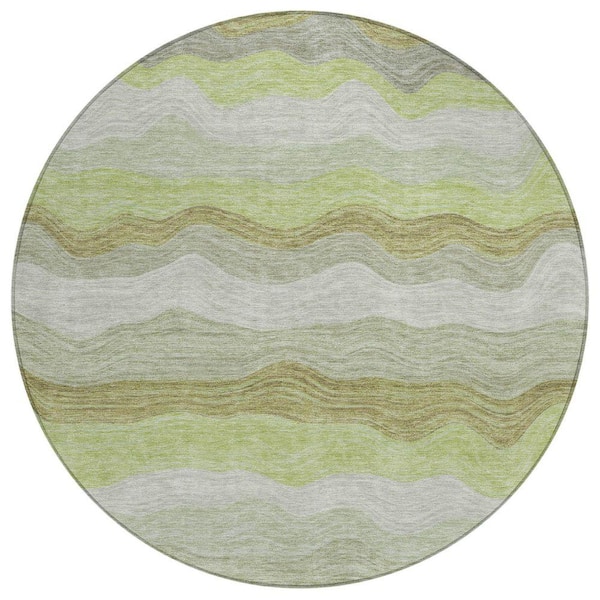 Chantille Machine Washable Indoor/Outdoor Abstract ACN2397 Aloe 8 ft. x 8 ft. Round Rug