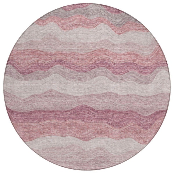 Chantille Machine Washable Indoor/Outdoor Abstract ACN2397 Salmon 8 ft. x 8 ft. Round Rug