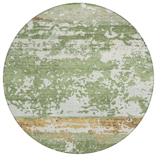 Chantille Machine Washable Indoor/Outdoor Abstract ACN2398 Aloe 8 ft. x 8 ft. Round Rug