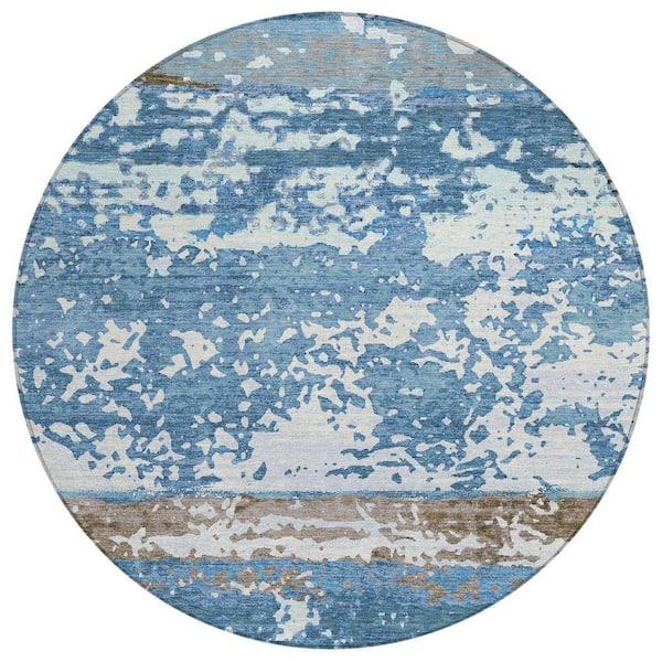 Chantille Machine Washable Indoor/Outdoor Abstract ACN2398 Blue 8 ft. x 8 ft. Round Rug