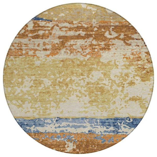 Chantille Machine Washable Indoor/Outdoor Abstract ACN2398 Gold 8 ft. x 8 ft. Round Rug