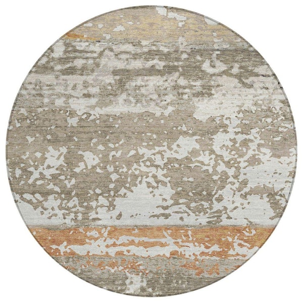 Chantille Machine Washable Indoor/Outdoor Abstract ACN2398 Taupe 8 ft. x 8 ft. Round Rug
