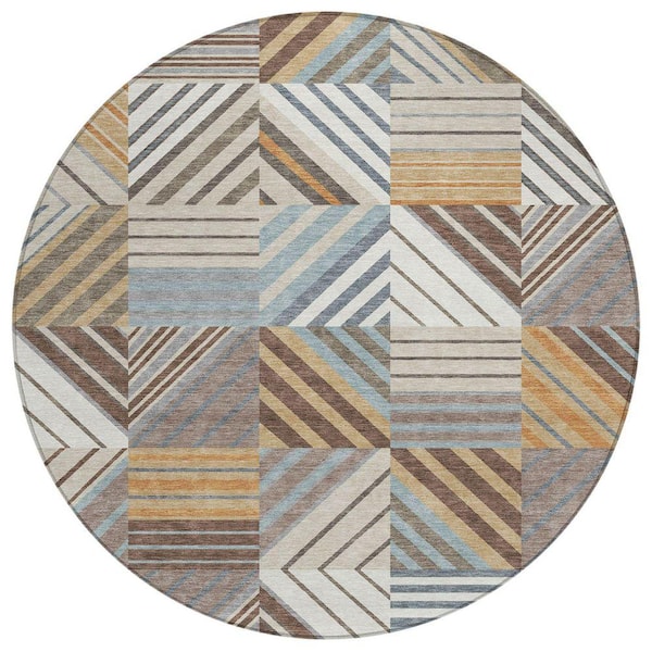 Chantille Machine Washable Indoor/Outdoor Abstract ACN2399 Taupe 8 ft. x 8 ft. Round Rug
