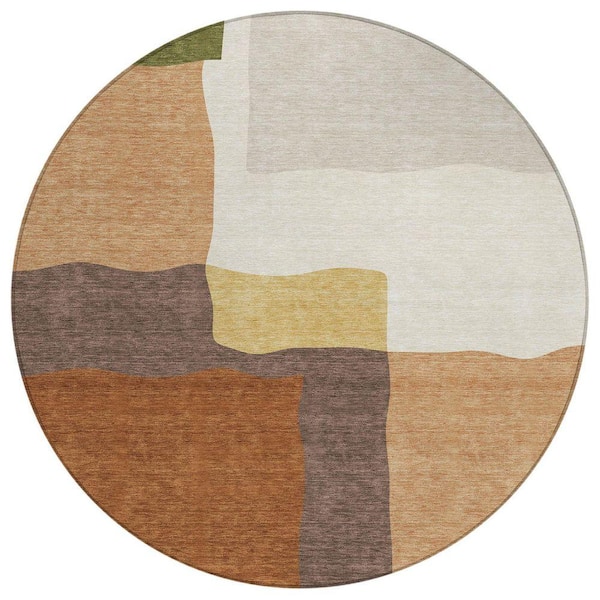 Chantille Machine Washable Indoor/Outdoor Abstract ACN2400 Copper 8 ft. x 8 ft. Round Rug