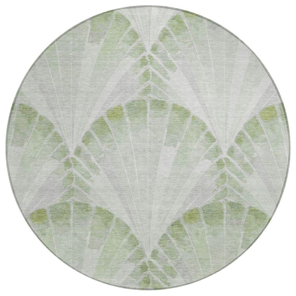 Chantille Machine Washable Indoor/Outdoor Abstract ACN2401 Aloe 8 ft. x 8 ft. Round Rug