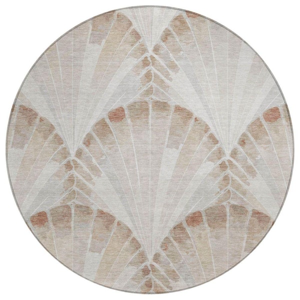 Chantille Machine Washable Indoor/Outdoor Abstract ACN2401 Beige 8 ft. x 8 ft. Round Rug