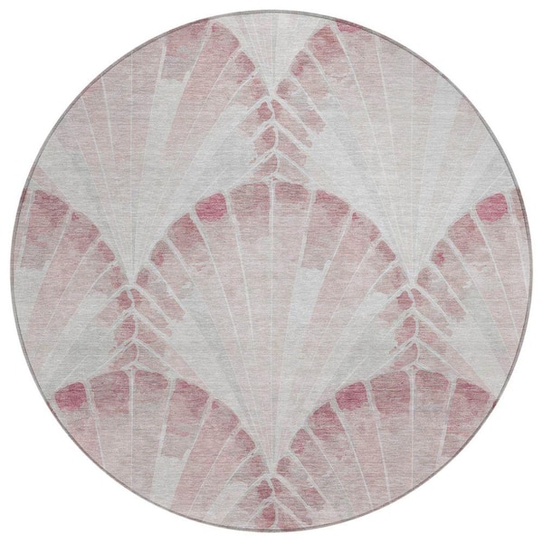 Chantille Machine Washable Indoor/Outdoor Abstract ACN2401 Blush 8 ft. x 8 ft. Round Rug