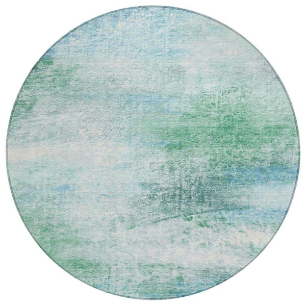 Chantille Machine Washable Indoor/Outdoor Abstract ACN2402 Mint 8 ft. x 8 ft. Round Rug