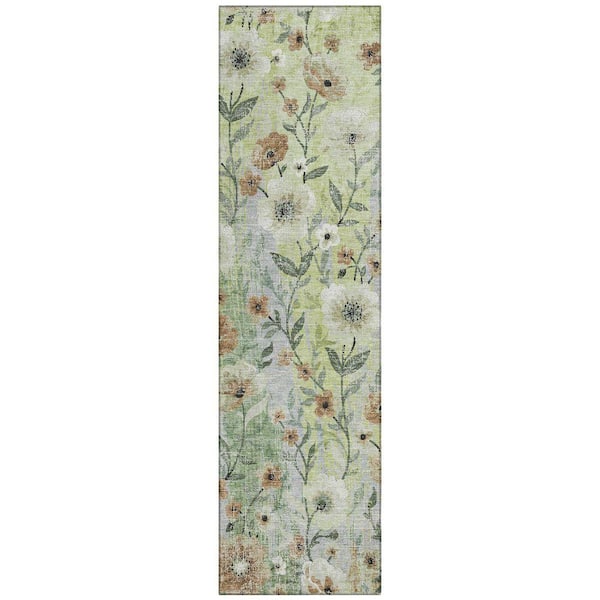 Chantille Machine Washable Indoor/Outdoor Abstract ACN2403 Aloe 2 ft. x 7 ft. Runner Rug