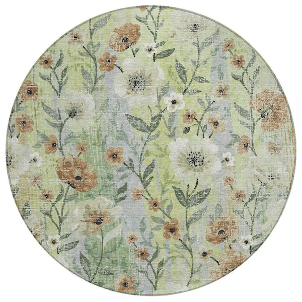 Chantille Machine Washable Indoor/Outdoor Abstract ACN2403 Aloe 8 ft. x 8 ft. Round Rug