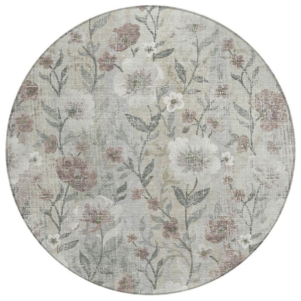 Chantille Machine Washable Indoor/Outdoor Abstract ACN2403 Beige 8 ft. x 8 ft. Round Rug