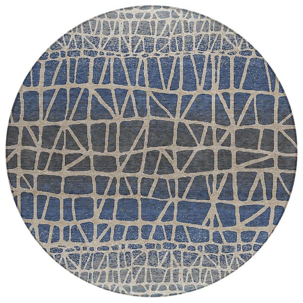 Chantille Machine Washable Indoor/Outdoor Abstract ACN2404 Blue 8 ft. x 8 ft. Round Rug