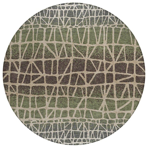 Chantille Machine Washable Indoor/Outdoor Abstract ACN2404 Fern 8 ft. x 8 ft. Round Rug
