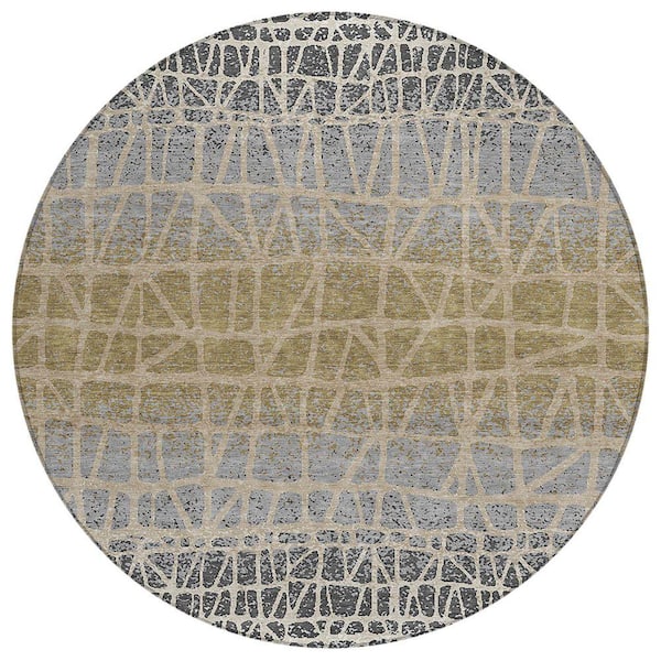 Chantille Machine Washable Indoor/Outdoor Abstract ACN2404 Gray 8 ft. x 8 ft. Round Rug