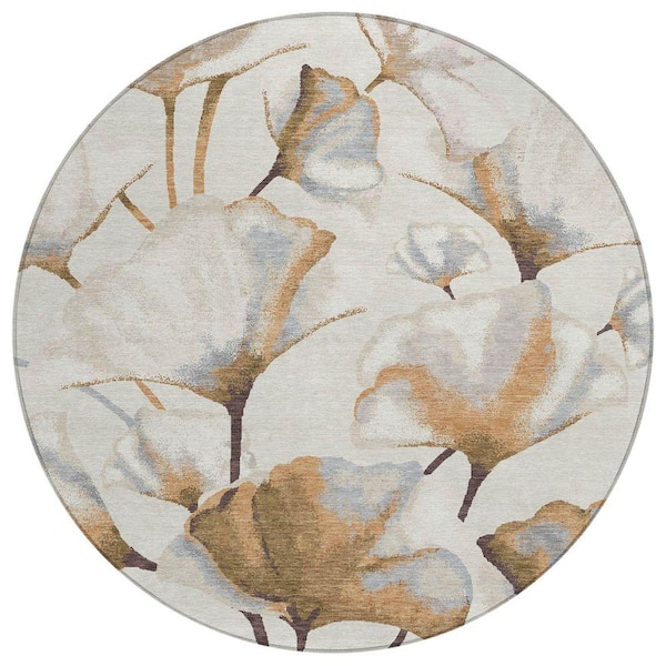 Chantille Machine Washable Indoor/Outdoor Abstract ACN2405 Copper 8 ft. x 8 ft. Round Rug