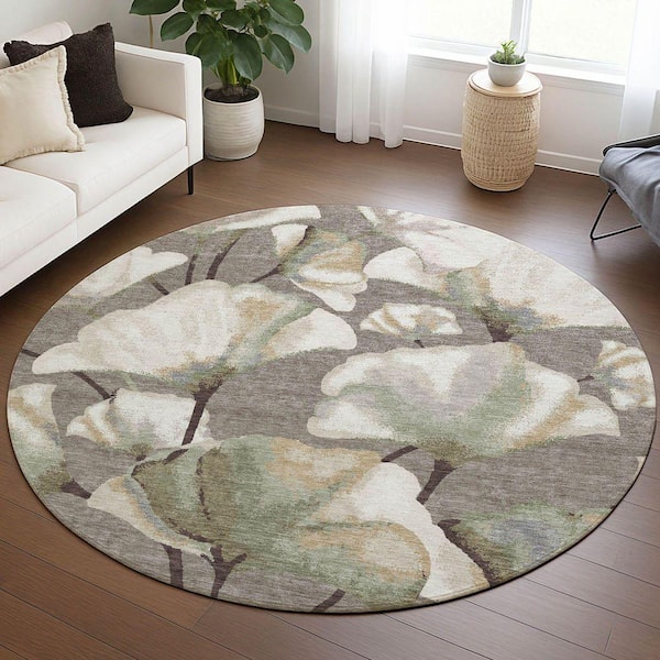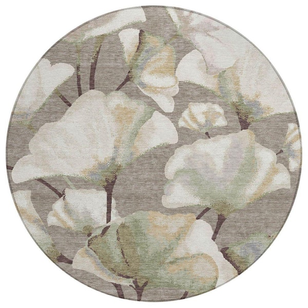 Chantille Machine Washable Indoor/Outdoor Abstract ACN2405 Taupe 8 ft. x 8 ft. Round Rug